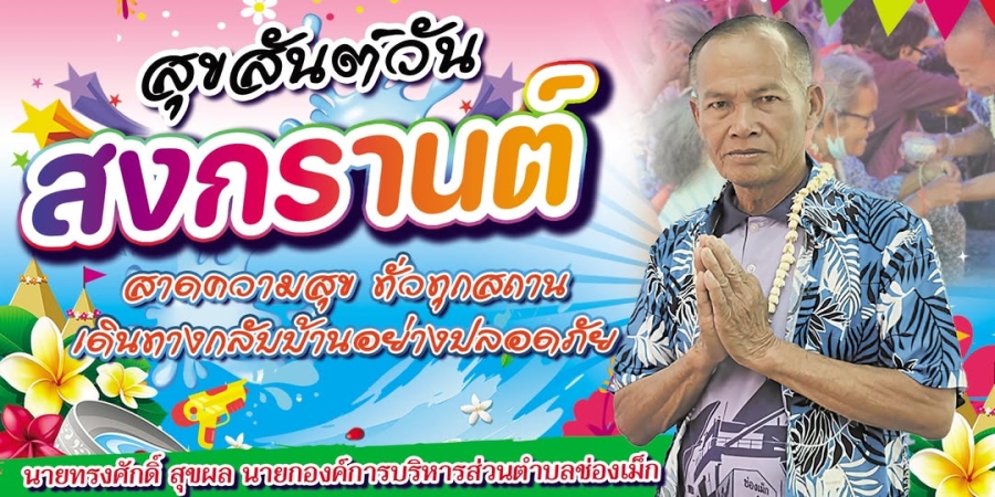 สุขสันต์วันสงกรานต์ ขอให้ทุกท่าน เที่ยวให้สนุก กลับบ้านอย่างปลอด ด้วยความเป็นห่วง เป็นใย จาก นายกองค์การบริหารส่วนตำบลช่องเม็ก อำเภอสิรินธร จังหวัดอุบลราชธานี